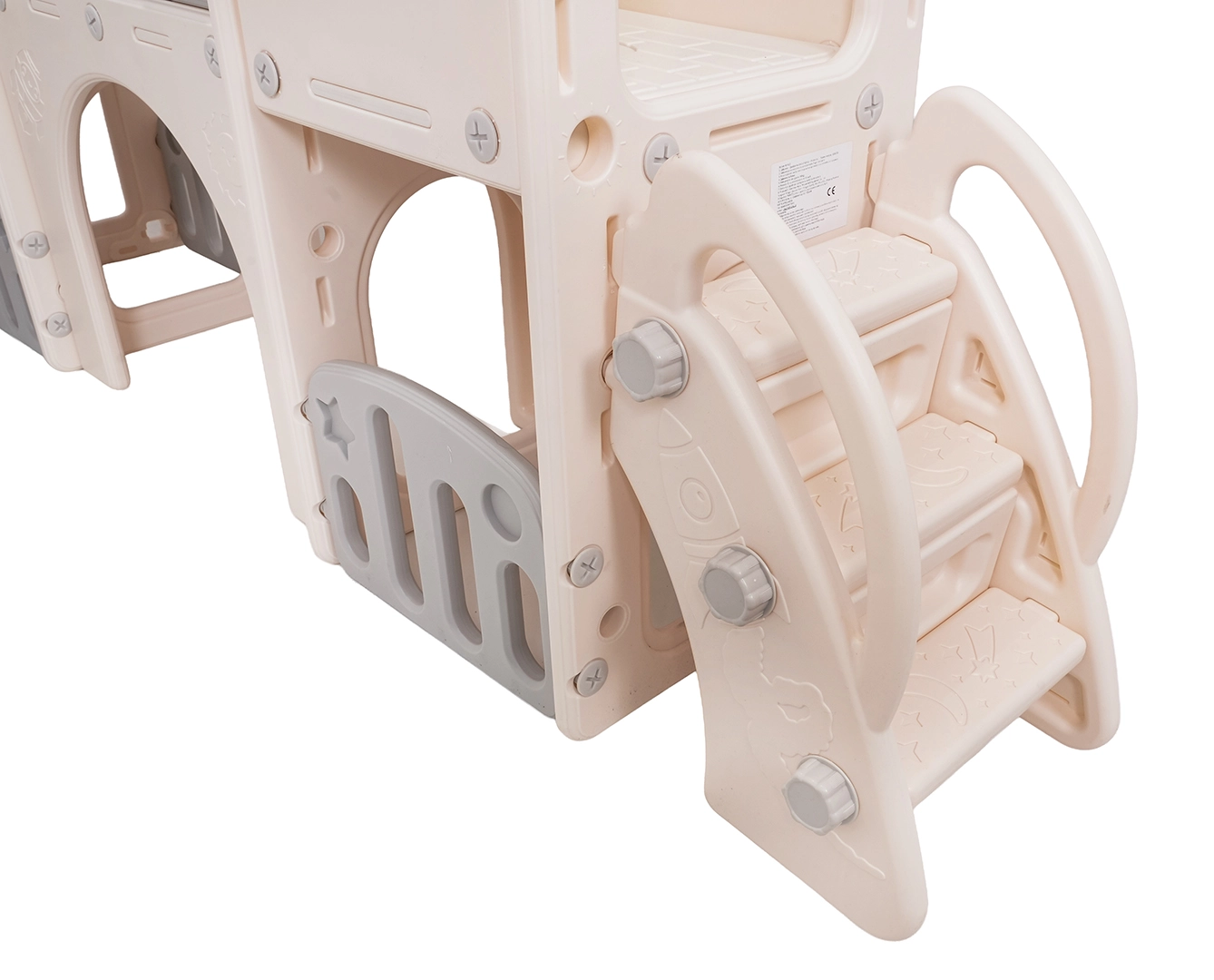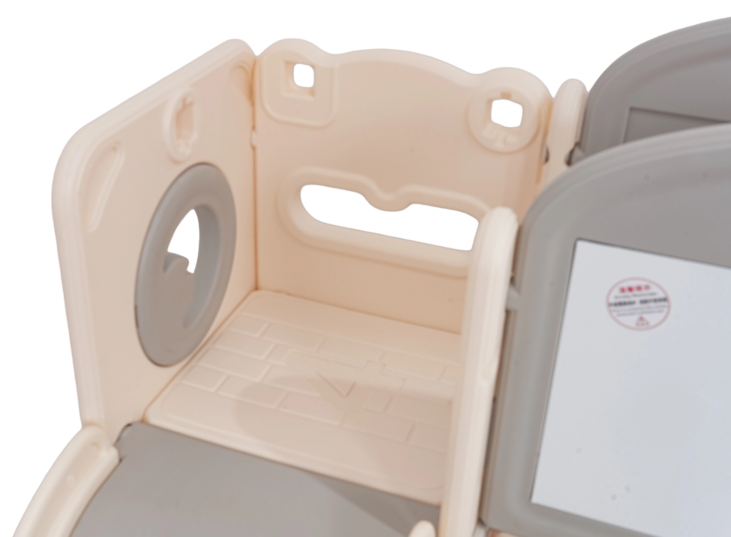 Izdelan je iz kakovostnega HDPE materiala, ki je bolj odporen na udarce in obrabo ter hkrati varen za otroke. Stabilna konstrukcija in široki stopničasti dostop z ročaji zagotavljajo varno uporabo tudi za najmlajše.