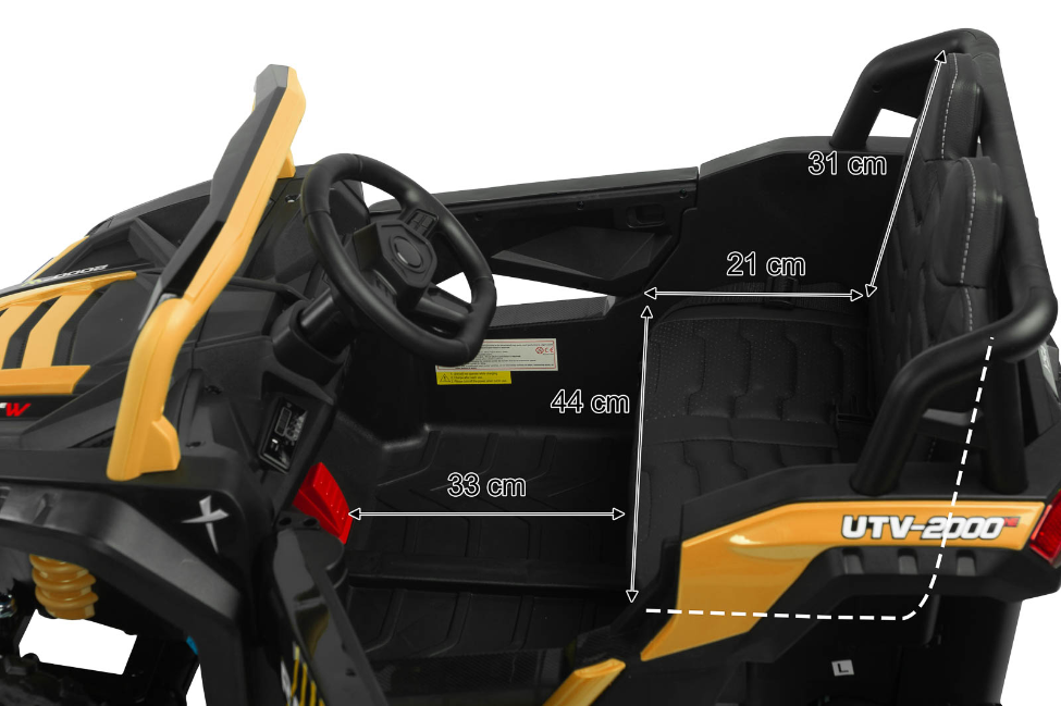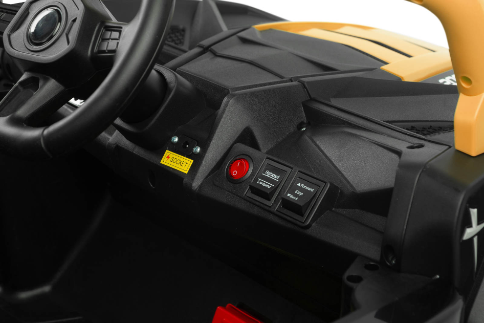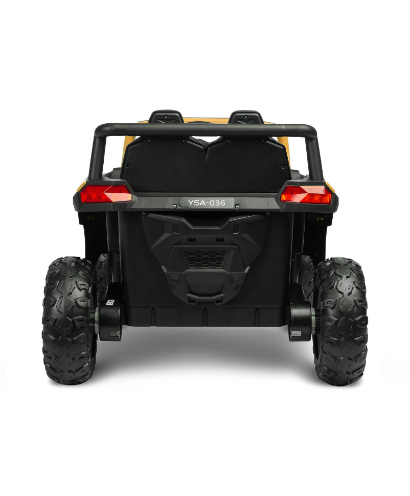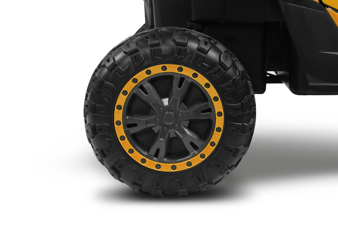 AXEL je izjemno zmogljivo otroško vozilo na akumulator v slogu terenskega buggyja ATV, ki združuje moč, varnost in udobje. Zahvaljujoč pogonu na vsa štiri kolesa (4x45W motorji) se odlično znajde na različnih terenih – od trde podlage do travnatih ali rahlo neravnih površin. Velika EVA penasta kolesa z globokim profilom in visokim podvozjem (17 cm) zagotavljajo stabilnost ter odlično oprijemljivost.