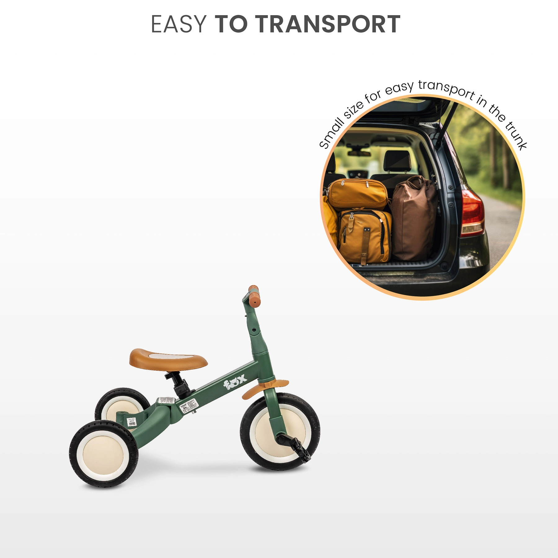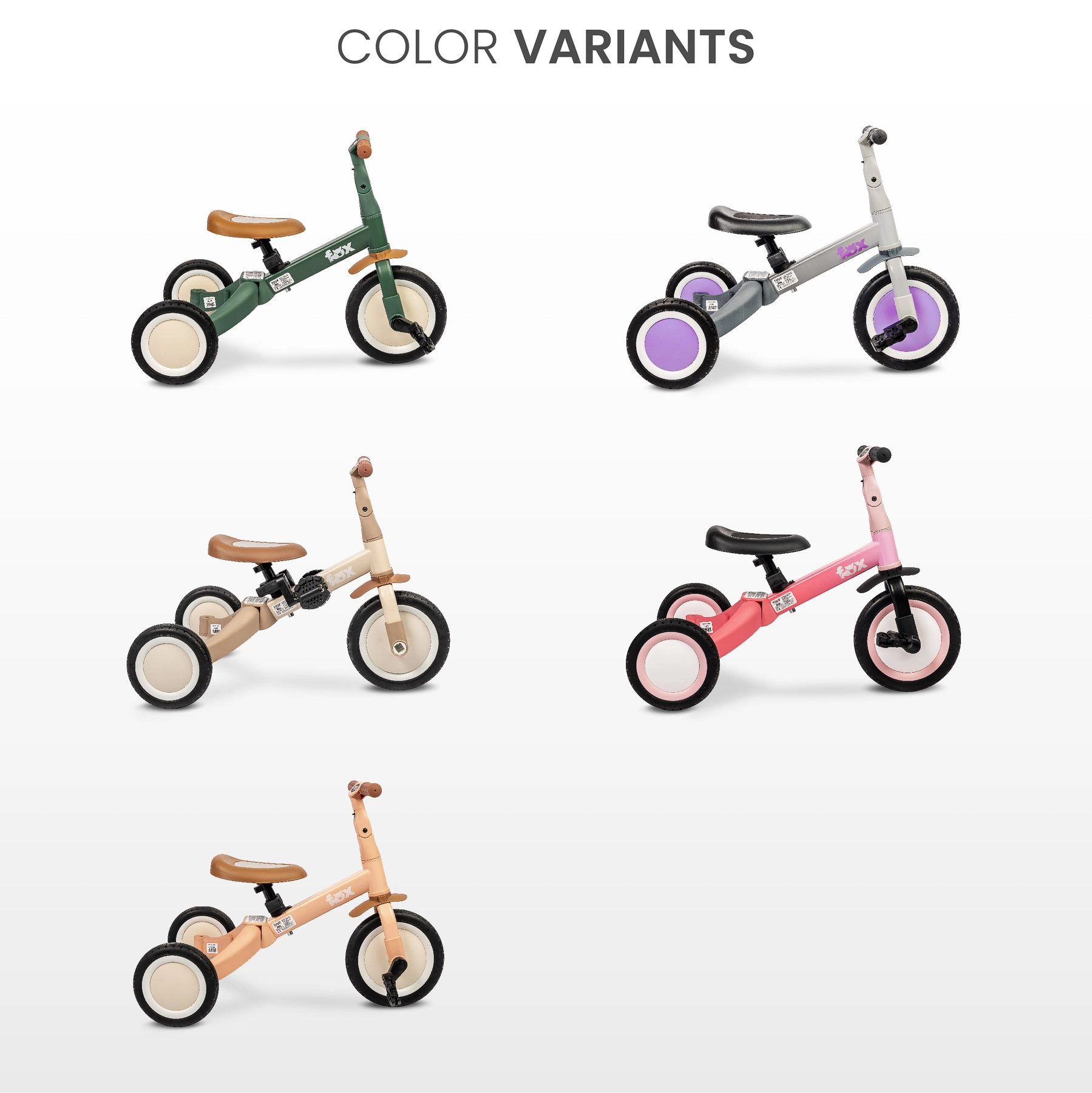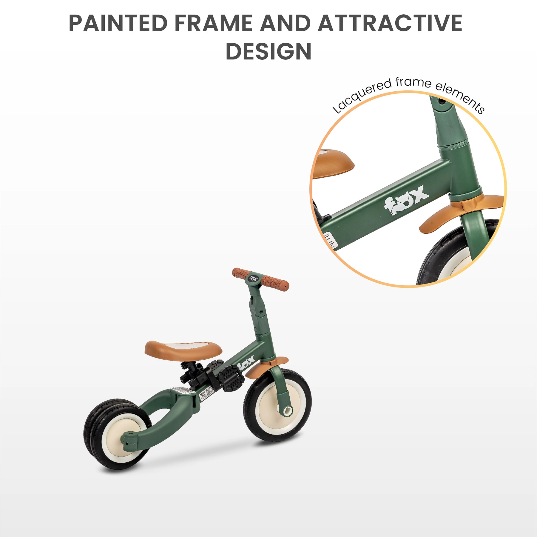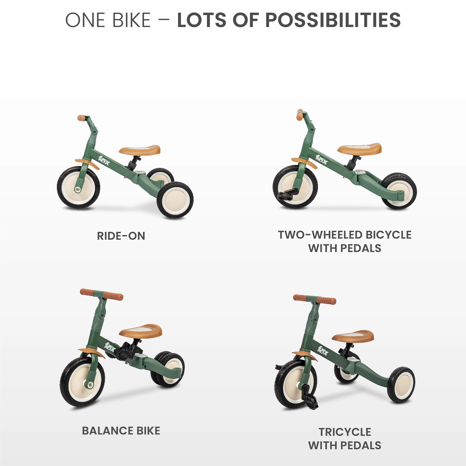 Večnamenski poganjalec Fox 4 v 1 je prilagodljiv otroški poganjalec za otroke od 18 mesecev do 5 let, ki se uporablja kot jezdilnik, poganjalec, trikolesnik s pedali in dvokolesnik s pedali ter ponuja nastavljivo višino sedeža in krmila, udoben sedež, penasta kolesa in stabilno, lakirano konstrukcijo.